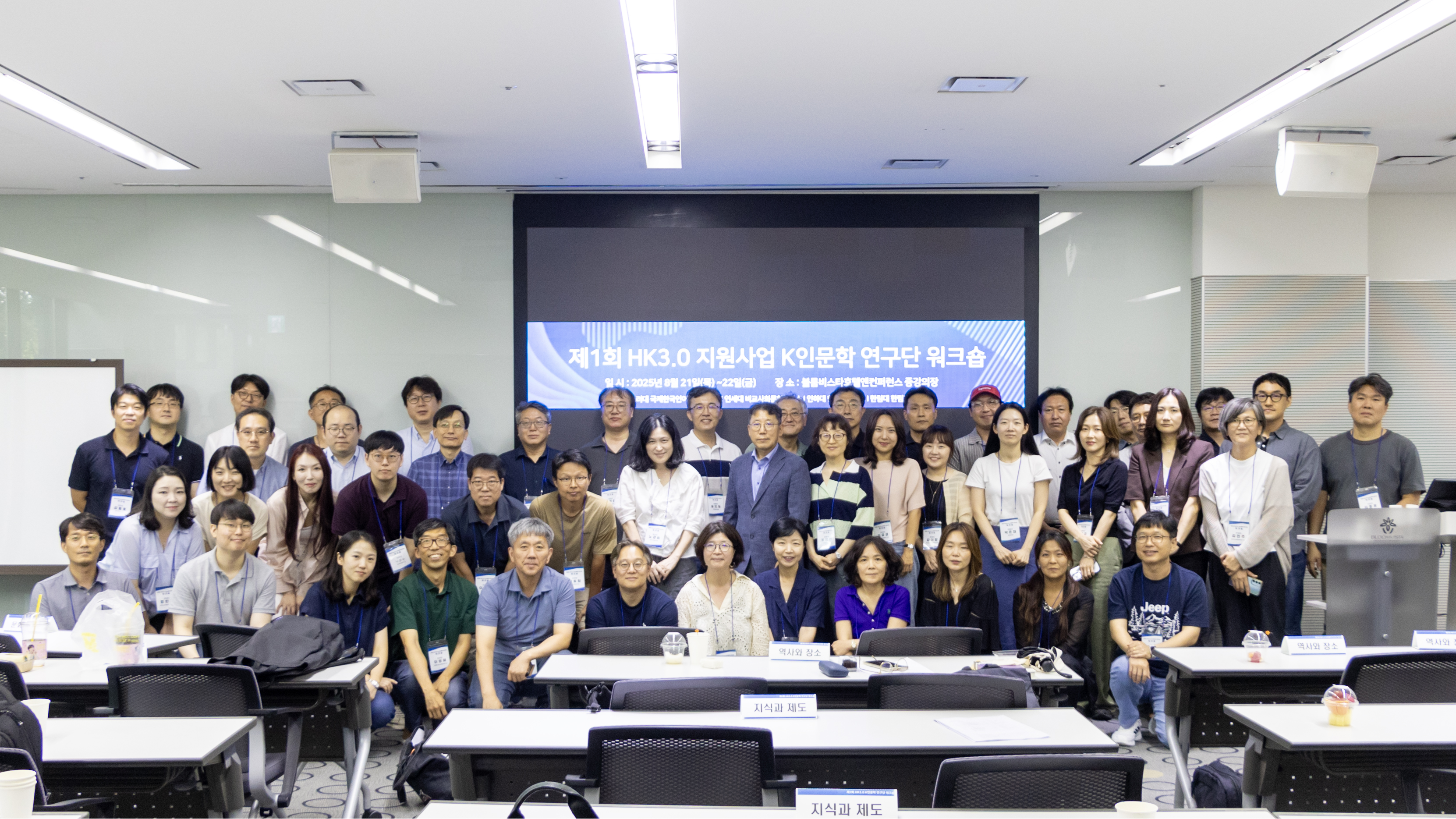 2025년 8월 21일에서 22일 양일간 제1회 HK3.0지원사업 K인문학 연구단 워크숍이 열렸다. 이번 워크숍은 7월 21일자로 시작된 한국연구재단 인문한국3.0(HK3.0) 컨소시엄 신규과제 '문명전환기 K인문학의 미래적 전회' 연구단이 4개의 연구소가 세부 과제의 연구진과 조직을 완비하고 공식적인 사업의 본격화를 알리는 행사다. 총 6개의 세부과제, 55명의 박사급 연구 인력을 포함해 100여명이 참여하는 대규모 연구단이 학제의 경계를 넘어 공통의 문제의식과 지향을 갖고 한자리에 모였다. 인류세, 기후변화, 복합위기 등으로 표상되는 근대 문명의 위기, 혹은 새로운 전환기에서 문명의 전환이라는 거대한 주제를 다루는 것은 오롯이 인문사회과학의 숙고를 요구하면서도 단일 학제의 스펙트럼을 넘어서는 도전이다. 즉 문명전환은 인류 문명이 처한 비상한 위기의 전지구적 성격을 가리키며, 이를 타계하기 위한 인문학의 발본적 전환의 필요성을 요구한다. 이에 본 컨소시엄은 최근 문명 전환 담론(인류세, 포스트휴머니즘, 다크 에콜로지, 등)을 참조하면서도 그 패배주의적 위험을 경계하면서, 지구적 차원의 난제에 대응하는 실천적 인문학 모델을 제안하고자 하는 공동의 지향을 갖는다. 근대 문명의 비합리성과 구조연동 되어 있는 인간종의 나약한 실존의 문제가 어떻게 학술장 공통의 사유로 제기되는가, 혹은 인문학의 과업으로서 성찰될 수 있을 것인가는 이제 더 이상 추상적인 주제가 아닐 것이다.