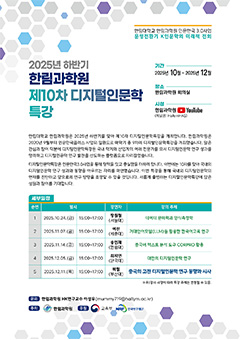 한림과학원은 HK+ 사업 때부터 본격적으로 개념사 연구에 디지털인문학의 방법론을 도입했다. HK+ 사업 시기 동안 세 차례의 학술대회를 개최해서 집중적인 이론적 논의의 자리를 마련한 바 있으며, 또한 매학기 5~6강으로 구성된 디지털인문학 특강을 시작해서 HK3.0 사업 때까지 이어오고 있다. 또한 일찍부터 국제적인 디지털인문학 네트워크 구축에 힘써왔다. (열린광장의 관련기관 페이지에는 그간 긴밀히 협력해온 동아시아 각국의 연구소 링크를 제공하고 있다. 바로가기 특히, 2025년 9월 중국 난징대에서 발족한, 10여 개 국가 30여 개 대학의 학자들이 참여하는‘문명연구실 국제 컨소시엄’(WCLC, World Civilisation Laboratory Consortium)에서 주도적인 역할을 맡고 있다.